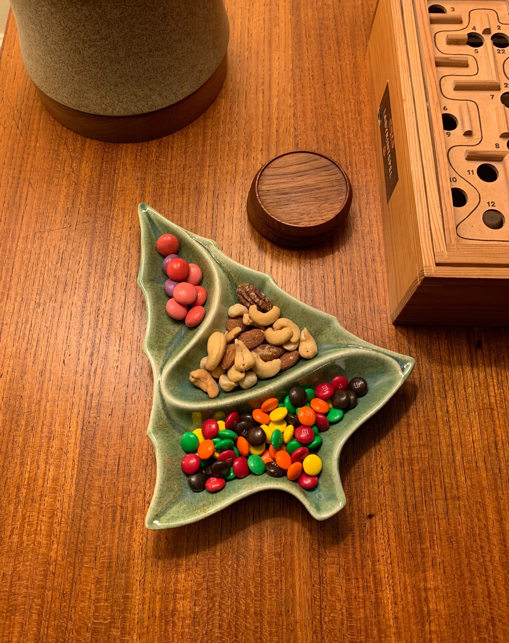 The Christmas Tree dish is beautifully made and the glaze is gorgeous. It’s the perfect place for our candy.