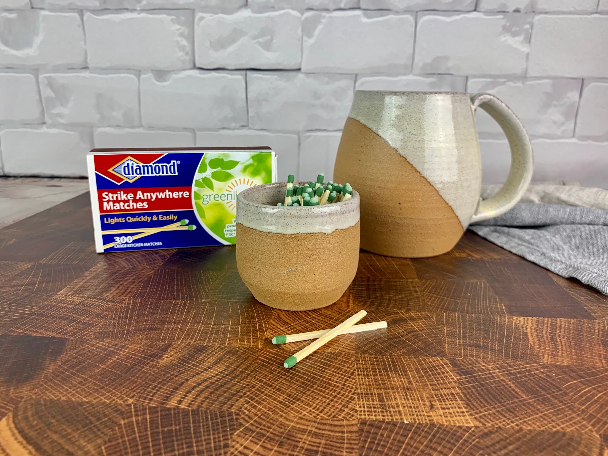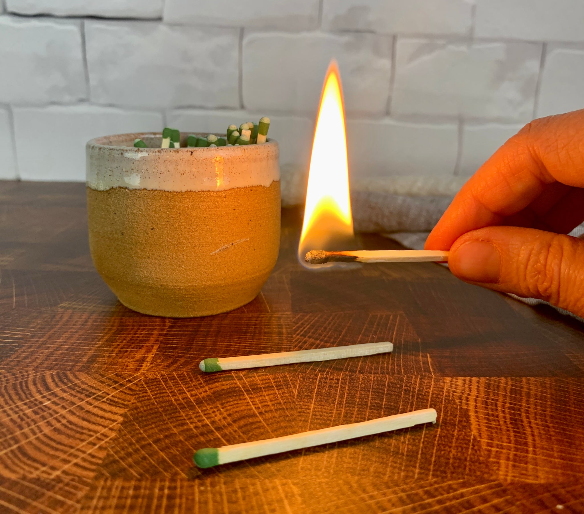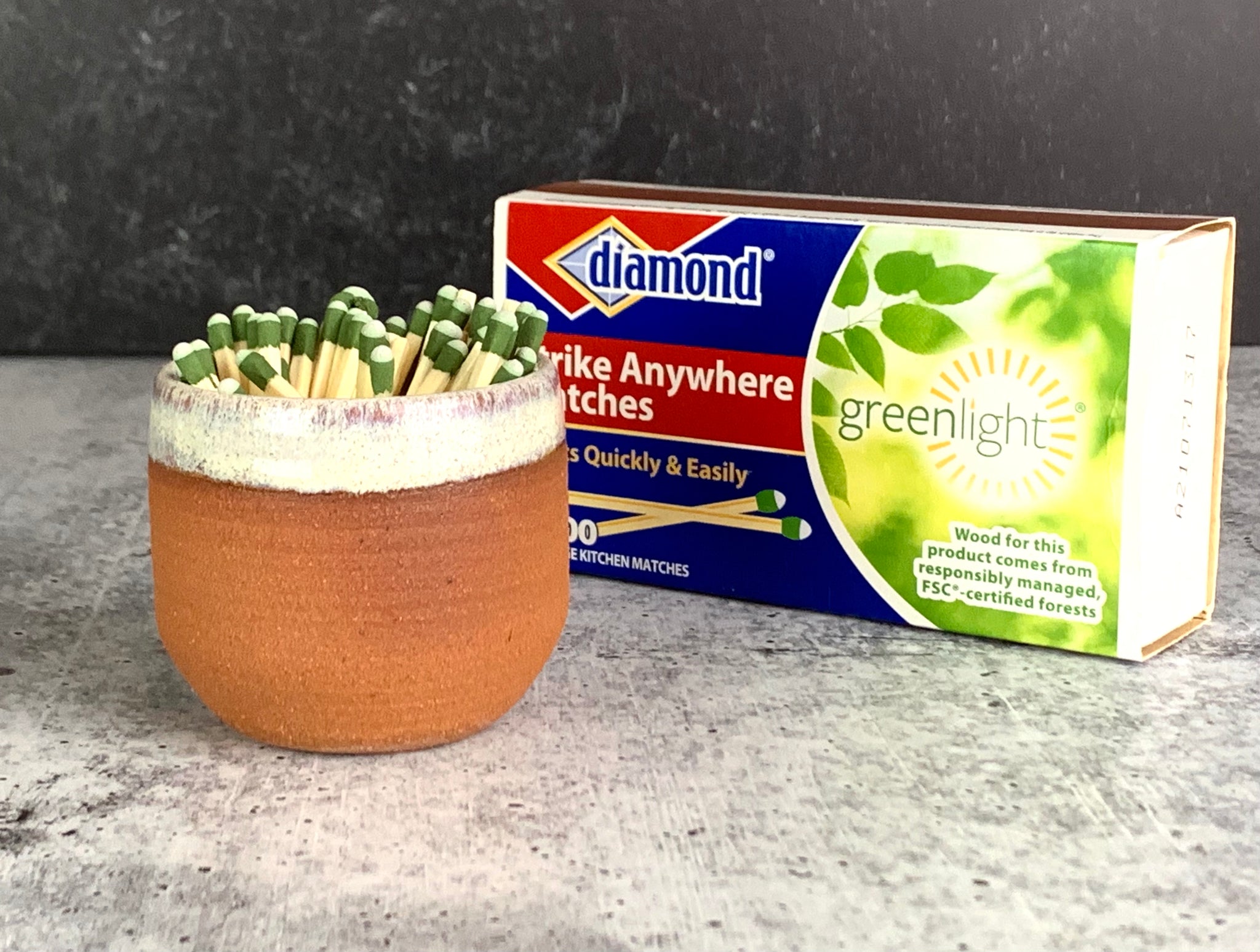 I will send a starter batch of matches with your pot! *Strike Anywhere* matches (pictured) are needed to work on these pots and are available at most drugstores, hardware stores or online.